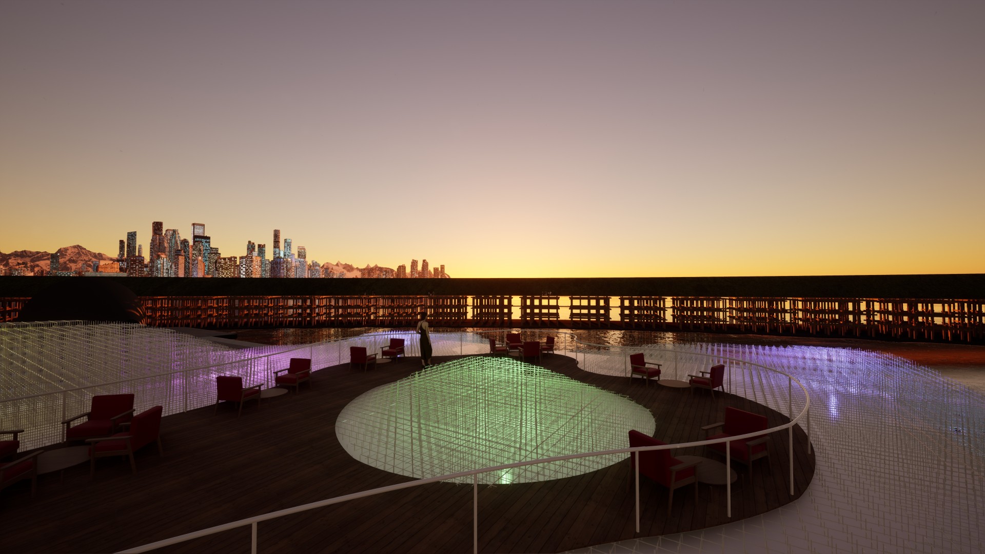 The design develops the central theme of the pavilion “Talent and Creativity for Life” through an original concept called “CODE OF UNITY”. The concept is based on the idea of connecting visitors from different parts of the world through a generated graphic output called “CODE OF INDIVIDUAL”, the form of which is influenced by the behaviour of the visitor inside the exhibition. The architectural design visually and functionally extends this experience and offers space for reflection on the experience just gained.