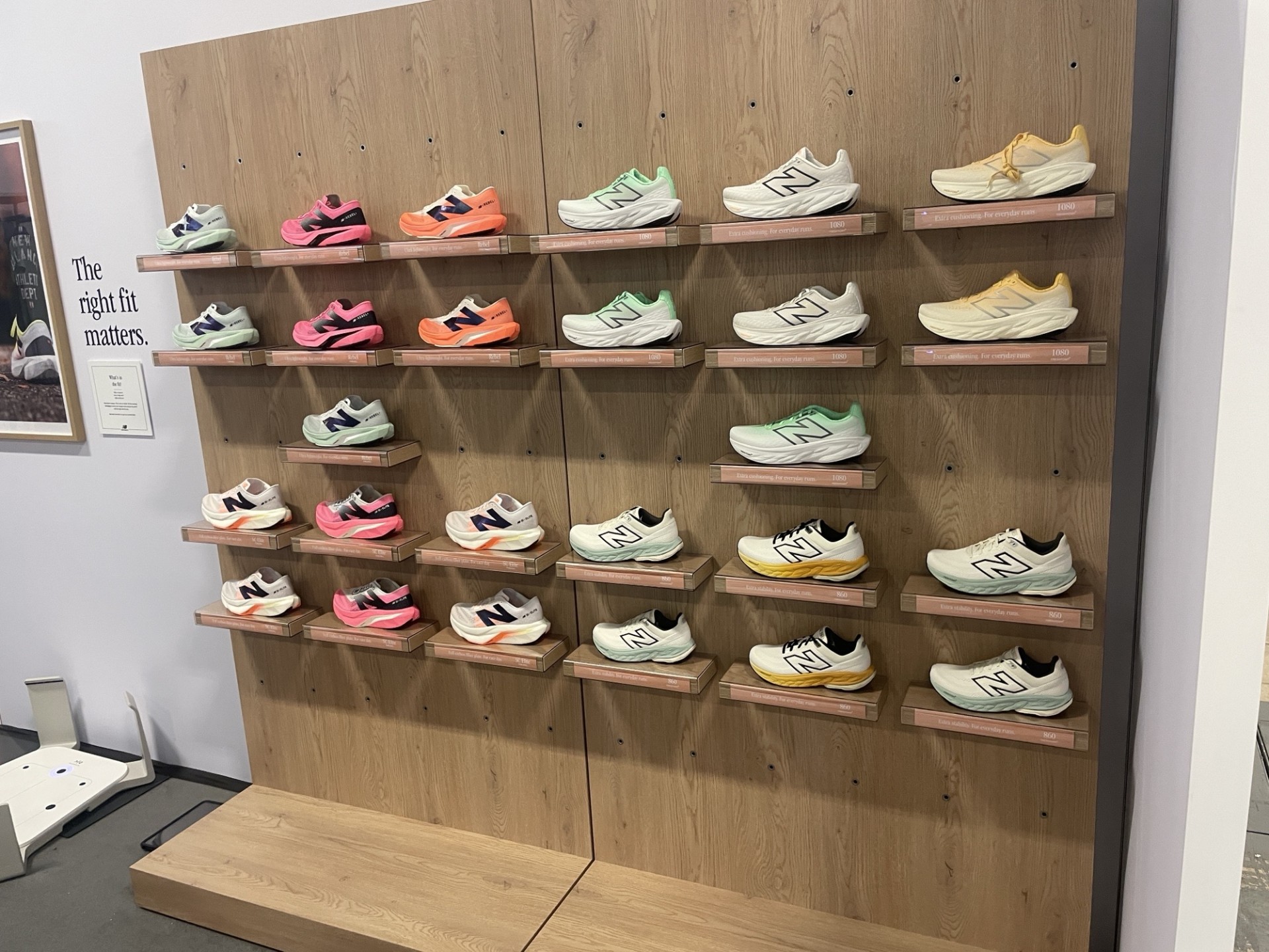Delivery of a completely new line of presentation furniture for New Balance, covering apparel, accessories, footwear and seating. The range includes innovative elements like modular hanging displays, versatile counters and comfortable seating with upholstery. Smart transport boxes made handling effortless and were widely praised for their practical and thoughtful design.