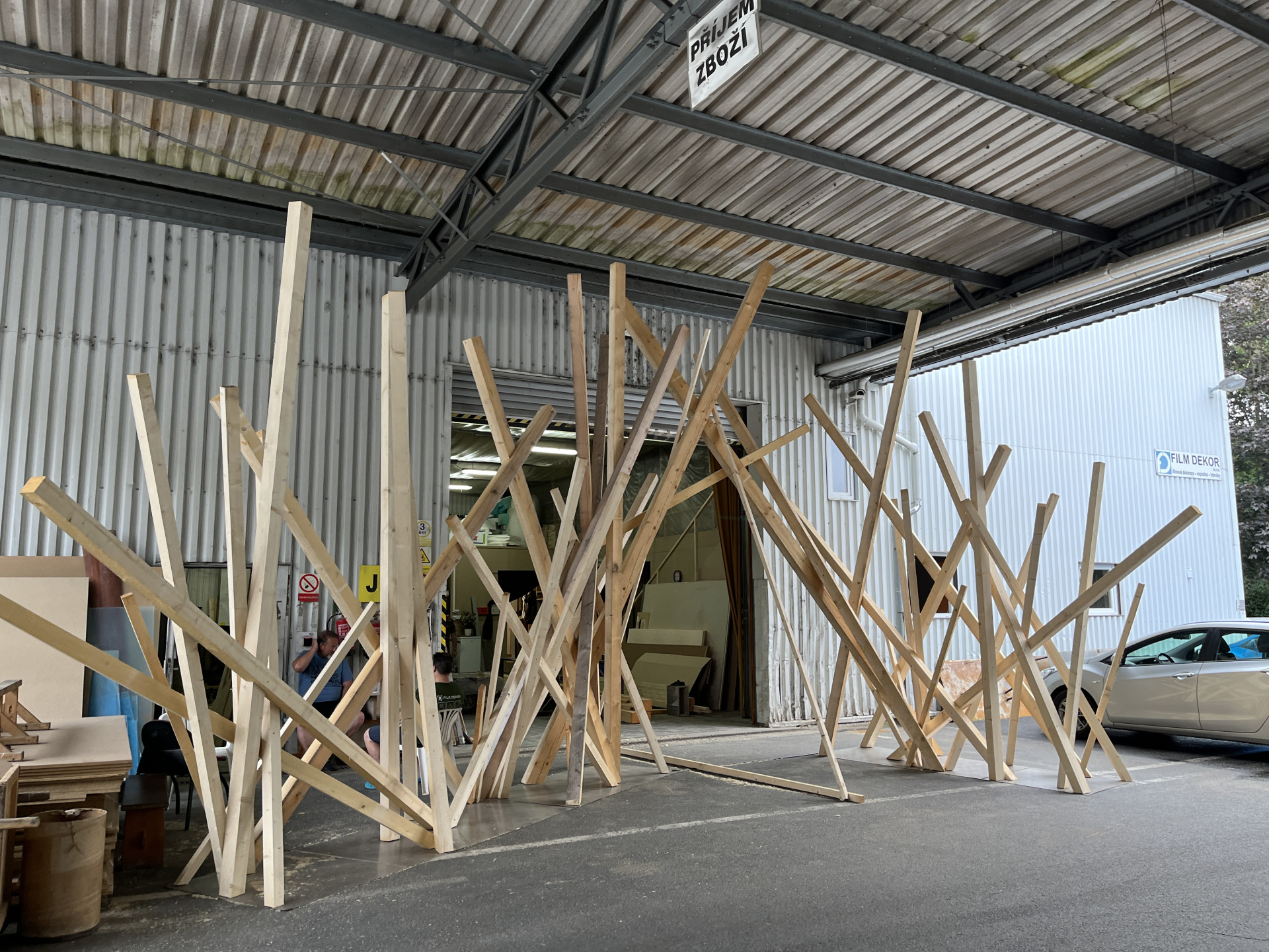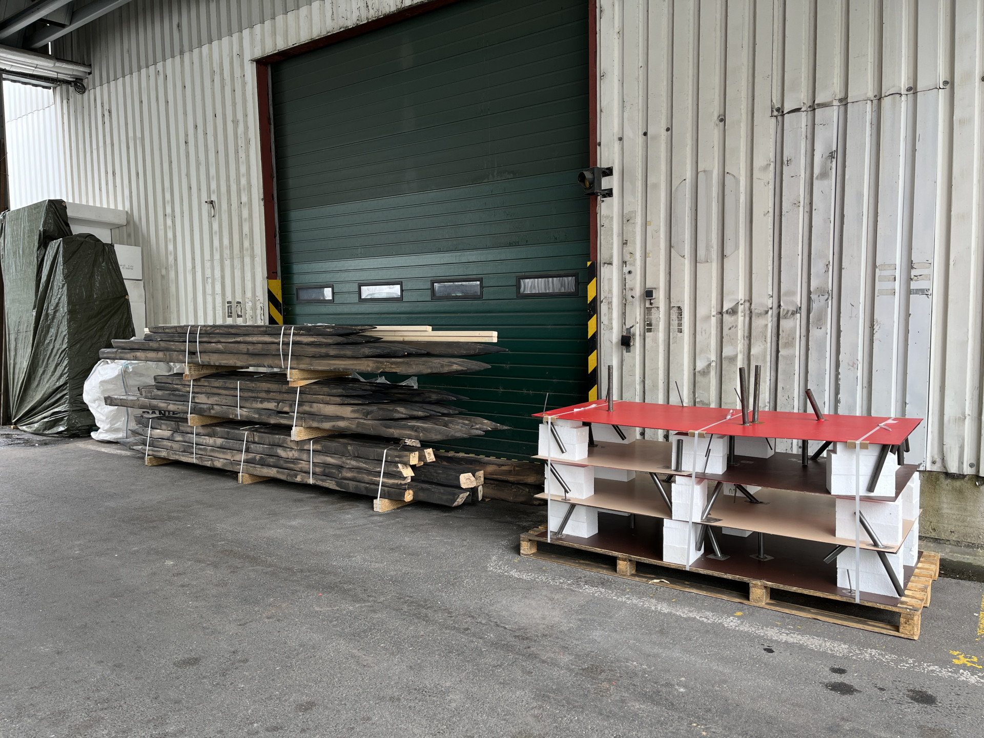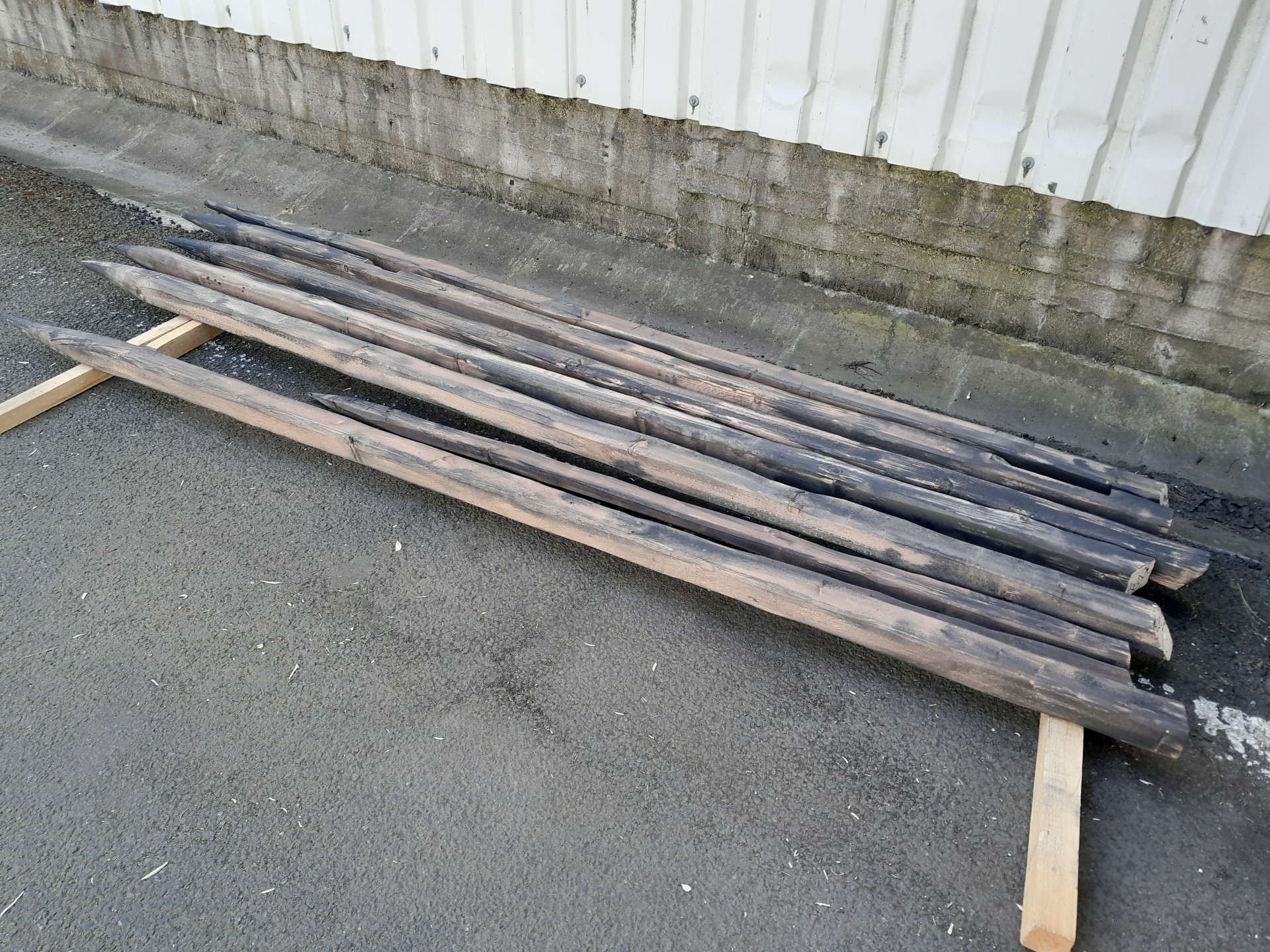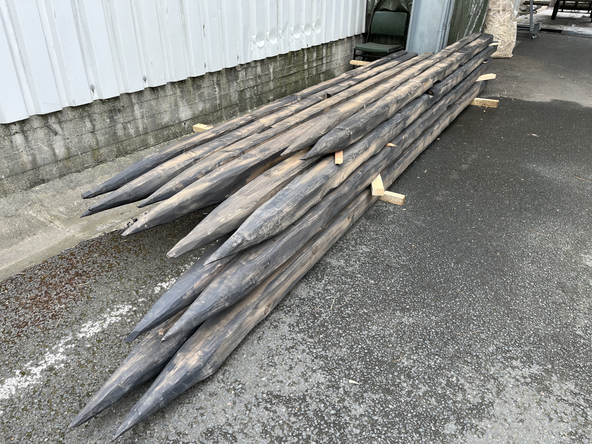 Production of stakes and stones from real carved and matted wooden beams.