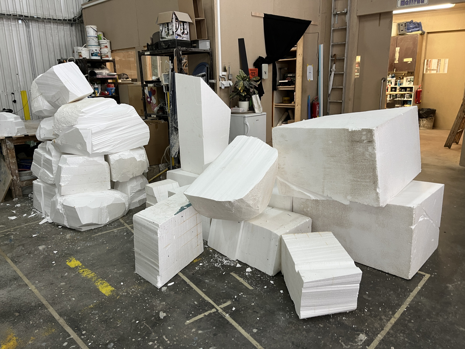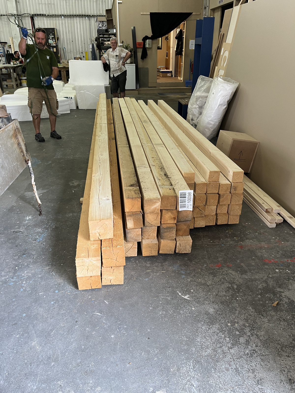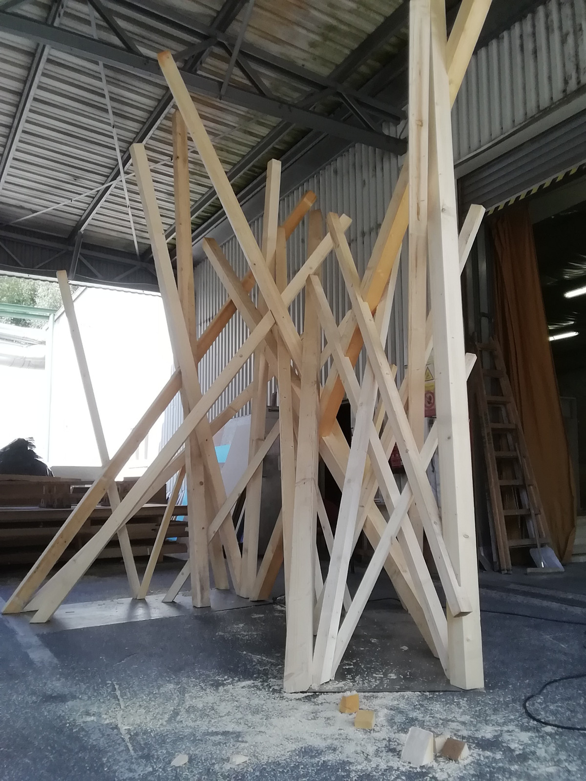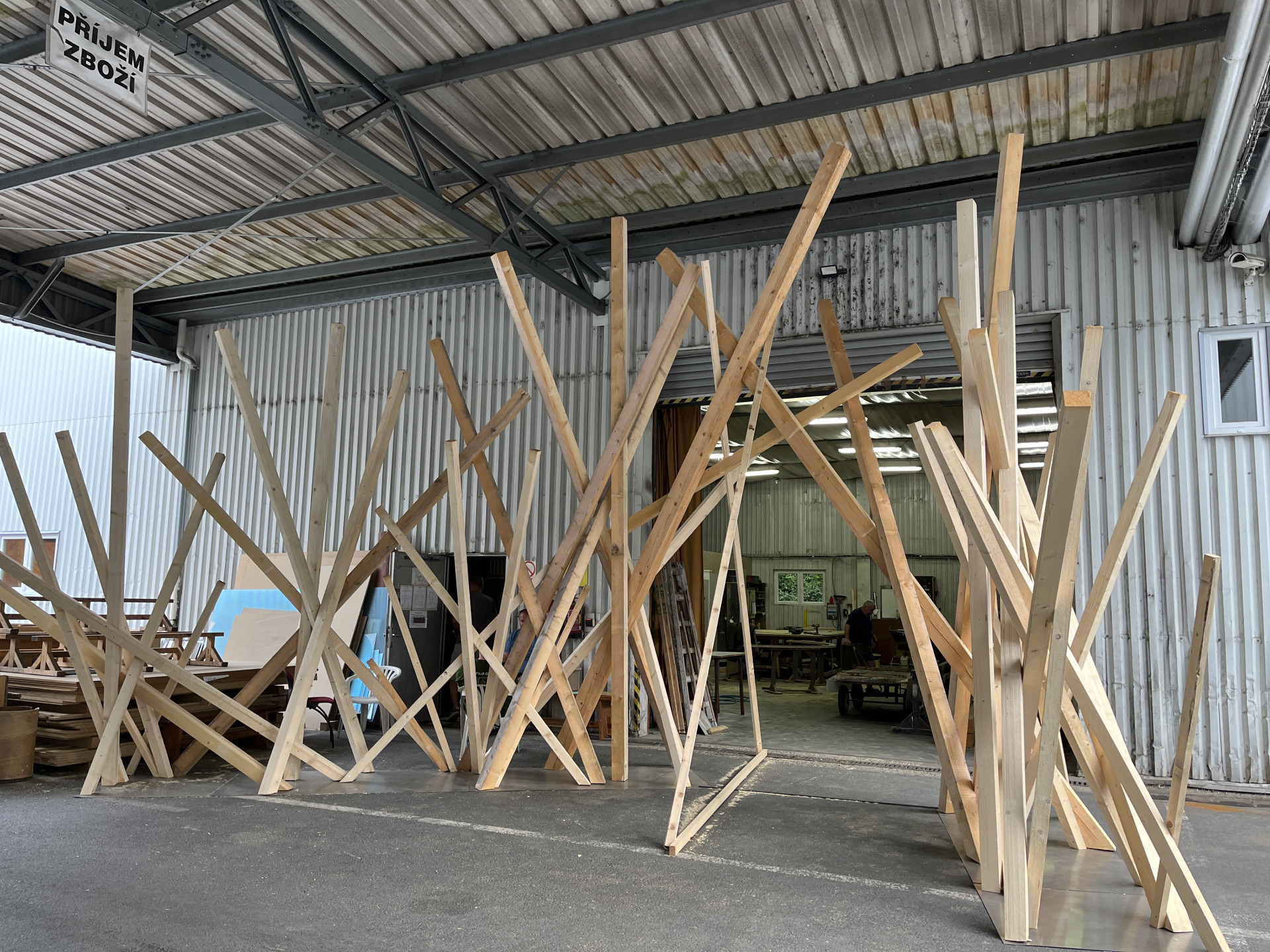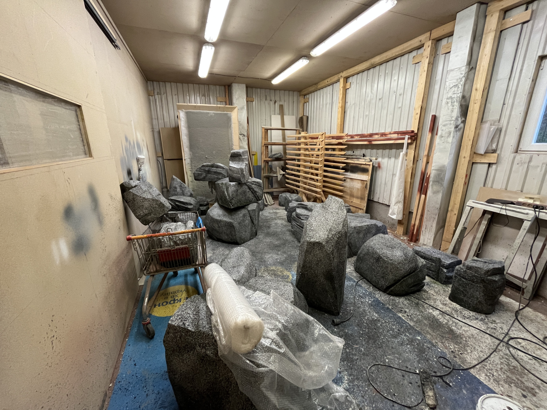 Production of stakes and stones from real carved and matted wooden beams.